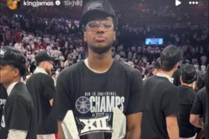 体育资讯03月04日讯 湖人球星詹姆斯转发了自己的小儿子布莱斯夺得Big 12联赛常规赛冠军的捧杯图片。